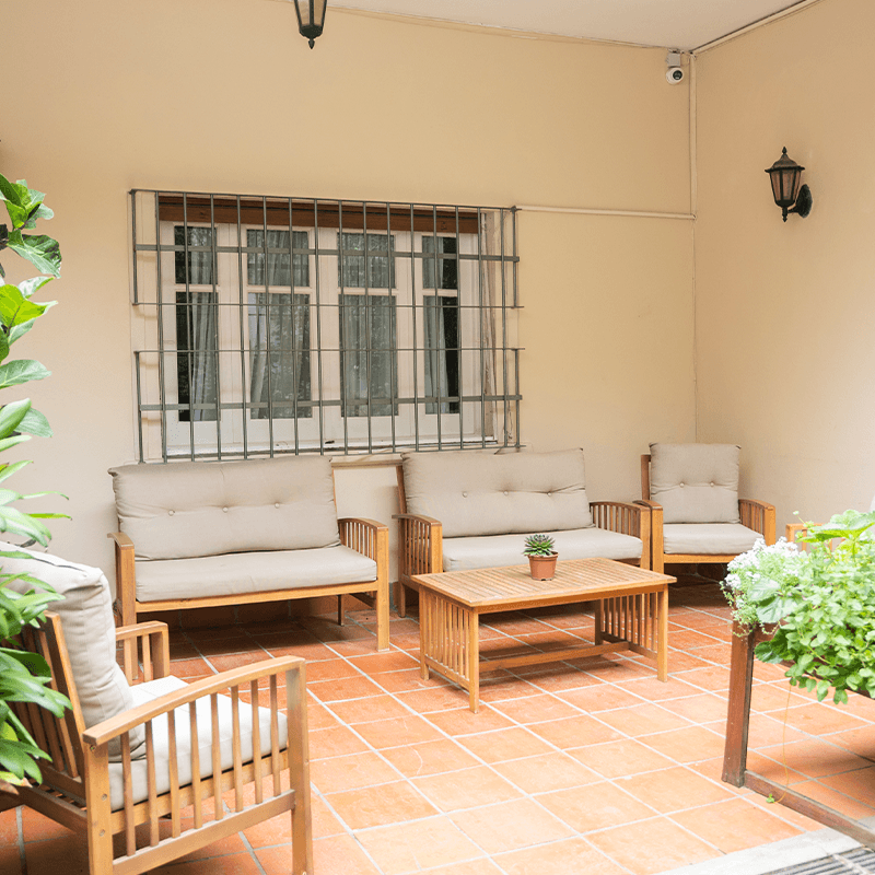 Contamos con diversos espacios para el desarrollo de la creatividad y el esparcimiento. Salones amplios y luminosos, espacios verdes y cómodas habitaciones correctamente equipadas, colaboran con la autonomía de nuestros pacientes y conforman un ambiente cálido y acogedor.